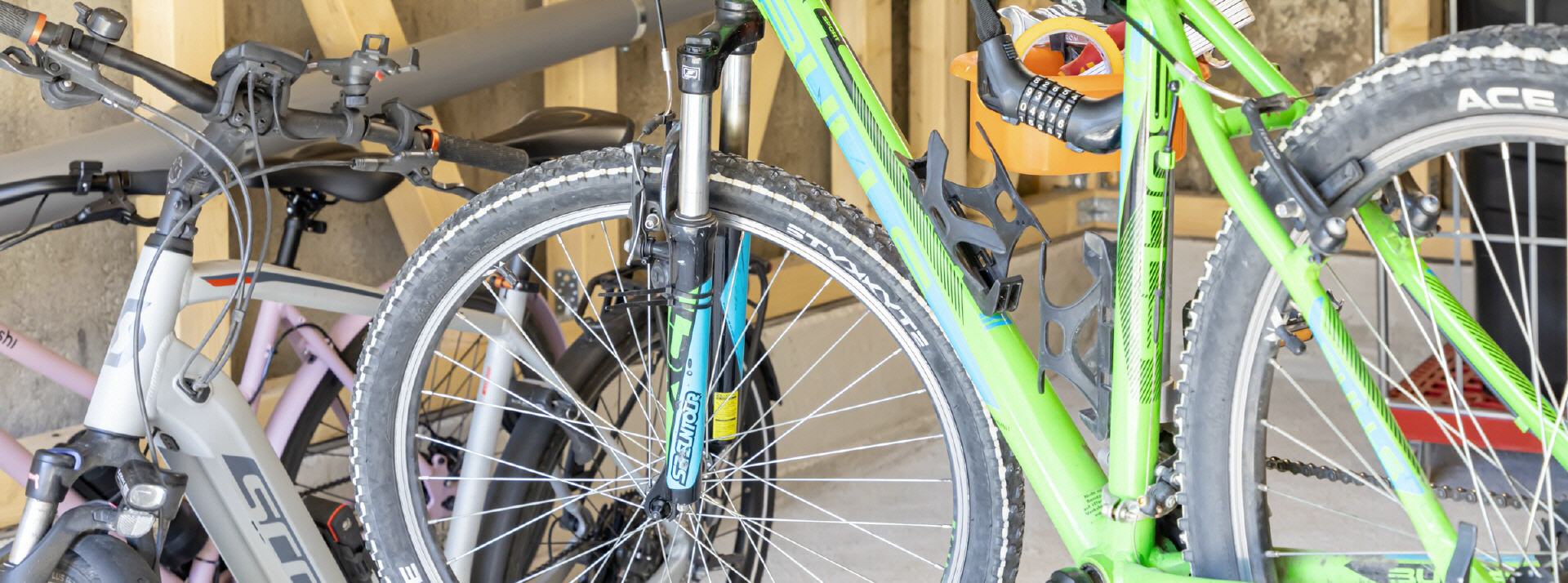 Damit Sie ihre wertvollen Fahrräder und E-Bikes sicher unterbringen können, finden Sie bei uns auch eine eigene Garage, nur für Bikes. Hier können Sie in verschließbaren Fächern - individuell für jedes Appartrement - wichtiges Zubehör sicher aufbewahren.